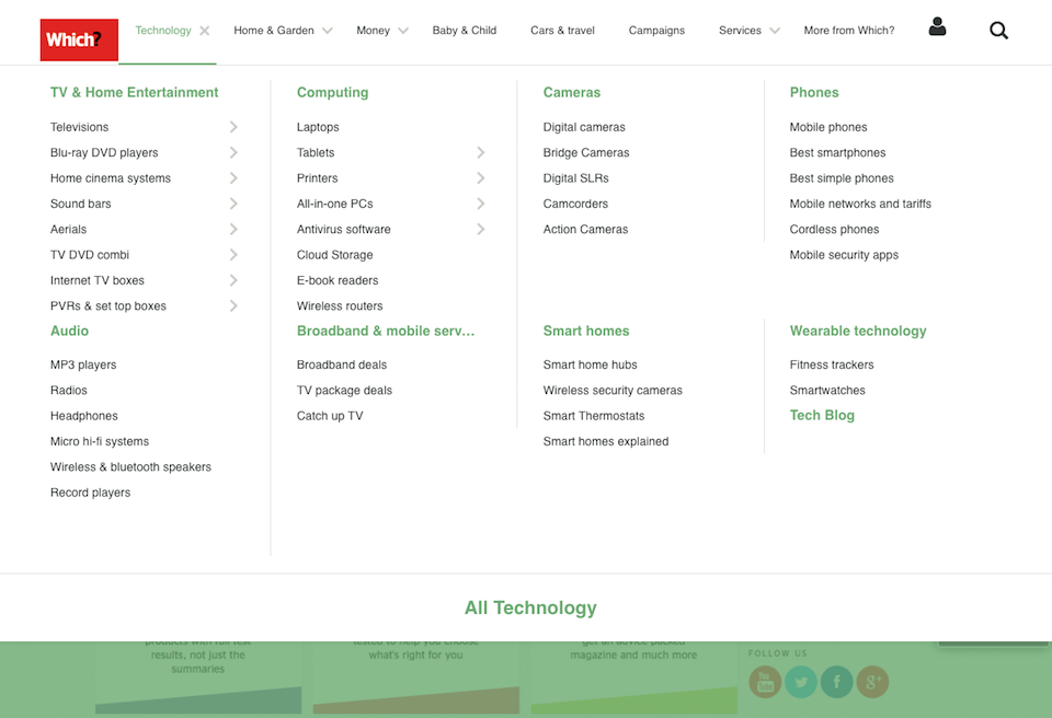Which? Consumer Association had done research which showed that their website's main navigation was not performing as well as it could and not helping the audience find their way to the content they wanted. I was hired to perform some research to understand the user's navigation needs and then to design a navigation system which would improve wayfinding and task completion.