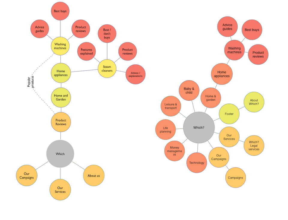 The first thing we did was review the existing research and from that we devised a card sort test to help us understand how the audience understood the categories and information on the site. We then performed an online cardsort exercise with both Which? members, and gerneral audience.